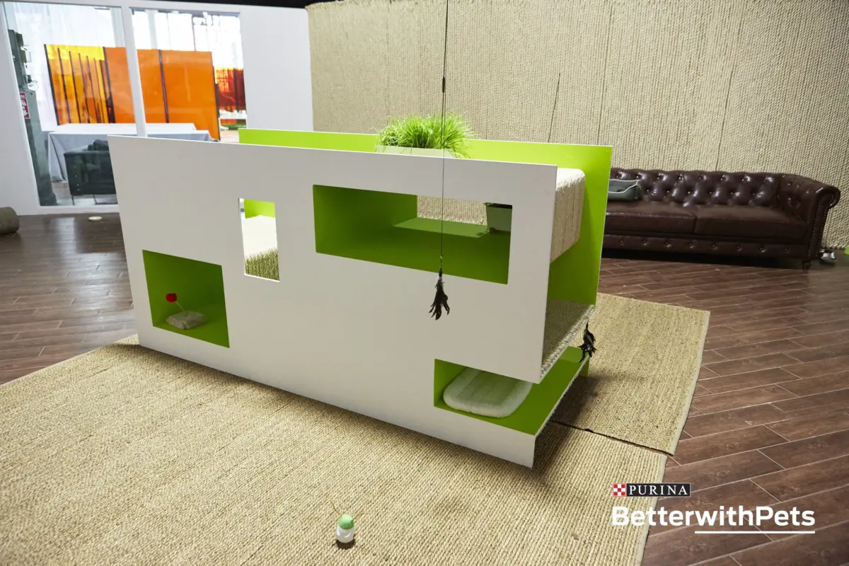 - FACT: Designing your home with your cat’s health in mind, can reduce its stress. Provide plenty of areas to climb, scratch and hide. Use colors that are pleasing to them like greens, blues and purples.
