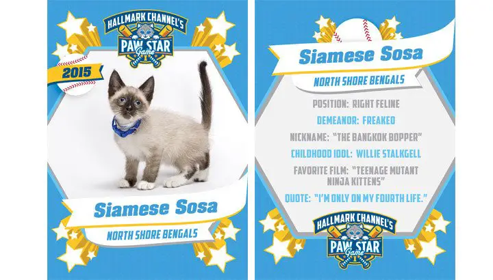 You won’t want to miss it with an all-star roster featuring kittens like Carlton Frisky, Kat Griffy, Jr., Tyger Cobb, Tomcat Lasorda, Darryl Pawberry, Siamese Sosa, Joe Catseco, Kat Ripken, Jr., Mike Troutbreath, Wade Pawgg and so many other cuties!!!