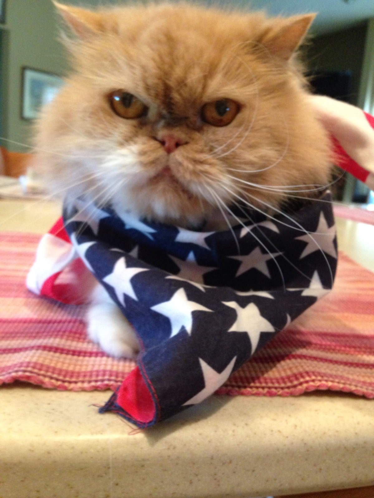 Check out the gallery of amazing runner’s up! You all look great in the red, white and blue! Have a happy and safe Independence Day everyone! Tell your friends to keep their cats indoors today! Animal control reports sharp increases in lost/missing pets on July 4th.
